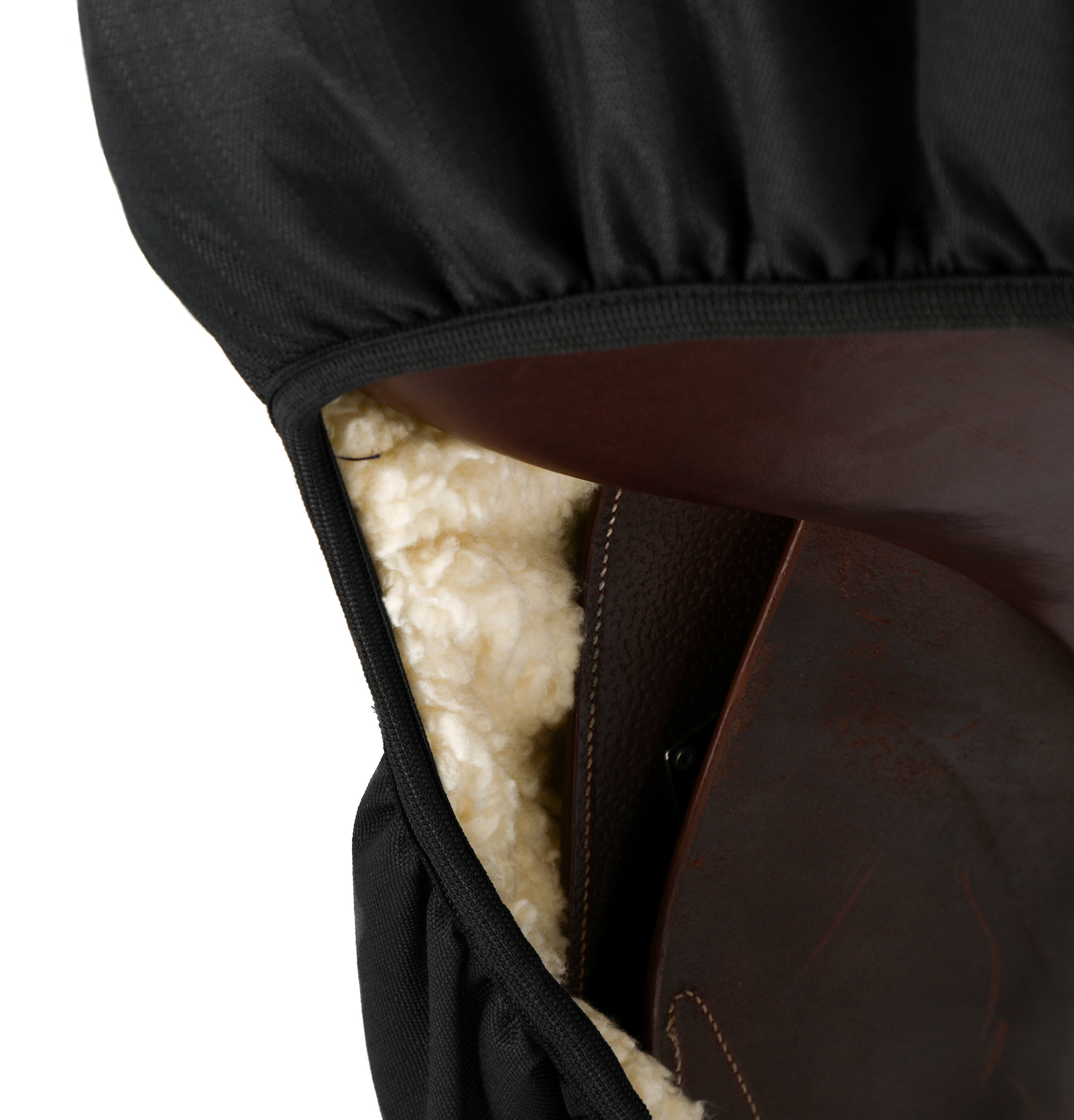 La housse de selle Flex-on doublée en mouton protège votre selle de la poussière et des rayures.